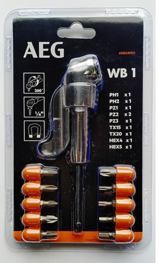 WB1 pravoúhly nastavec + 10 šroubovacích bitů