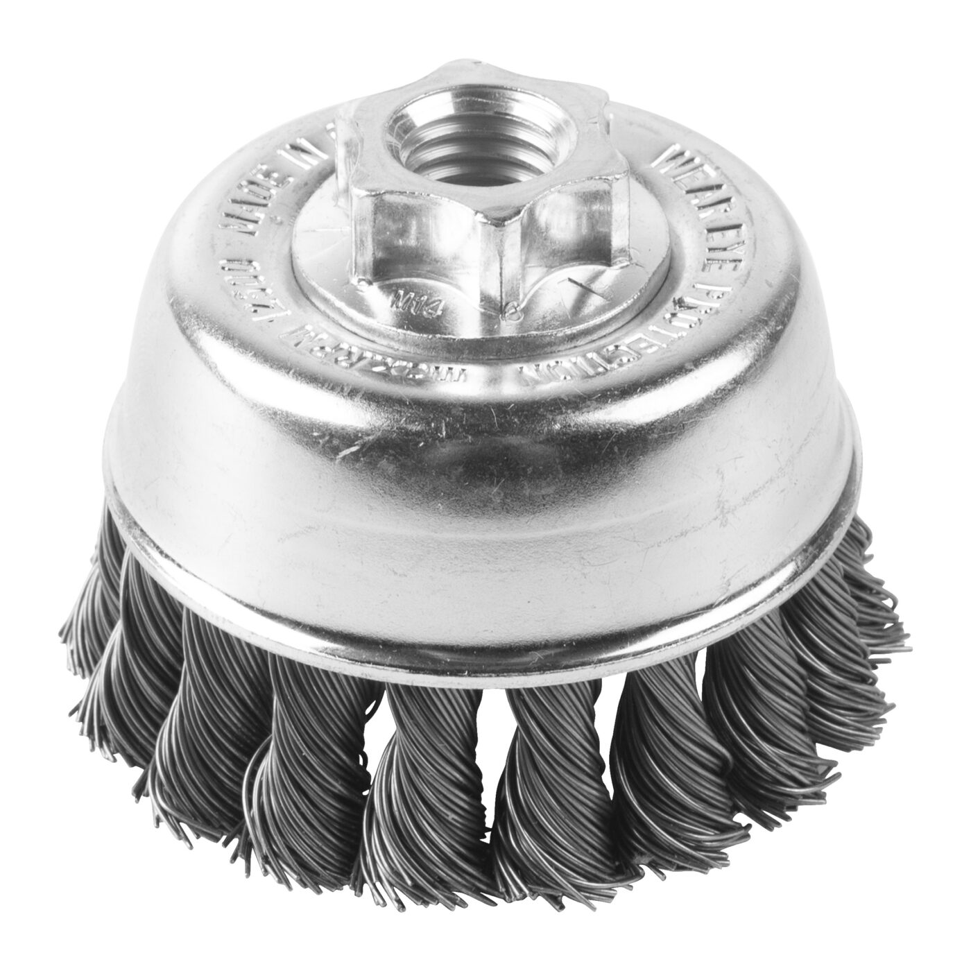 Hrnkový kartáč M14 65×18 mm, ocelový, splétaný drát 0,5 mm – 1 ks - Knot Cup Brush M14 65x18mm Steel 0.5mm - 1 pc