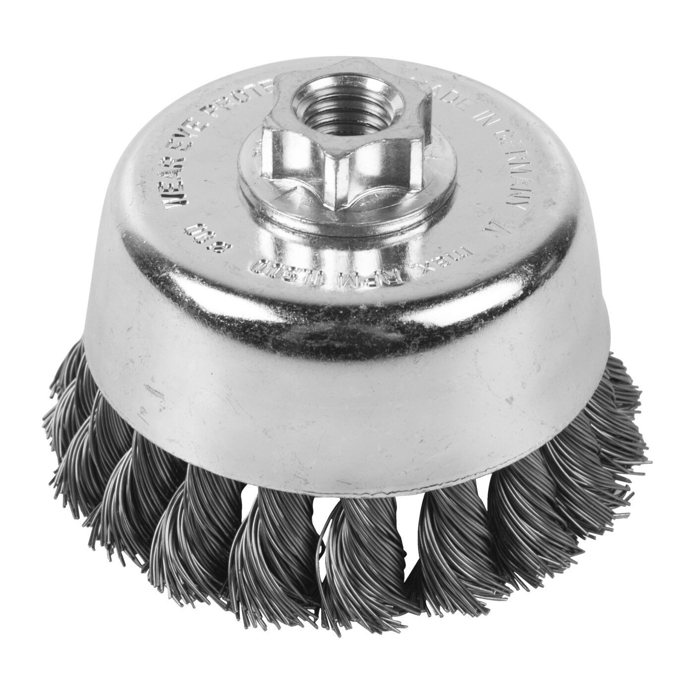 Hrnkový kartáč M14 90×20 mm, ocelový, splétaný drát 0,5 mm – 1 ks - Knot Cup Brush M14 90x20mm Steel 0.5mm - 1 pc