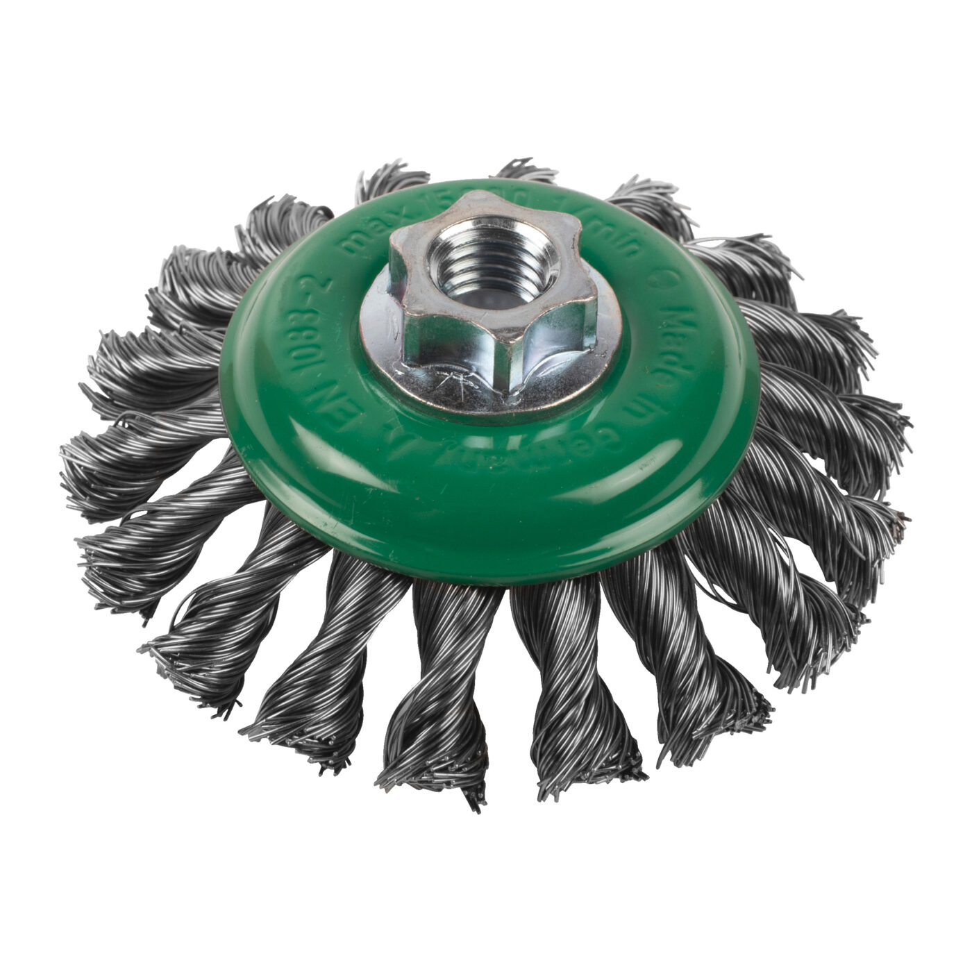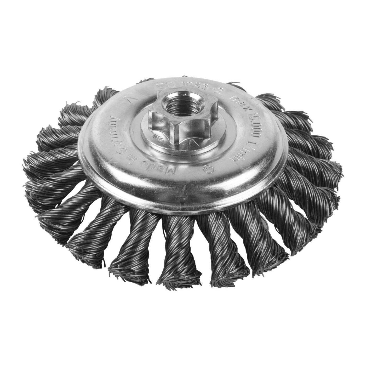 Kuželový kartáč M14 115×12 mm, ocelový, splétaný drát 0,5 mm – 1 ks - Knot Conical Brush M14 115x12mm Steel 0.5mm - 1 pc