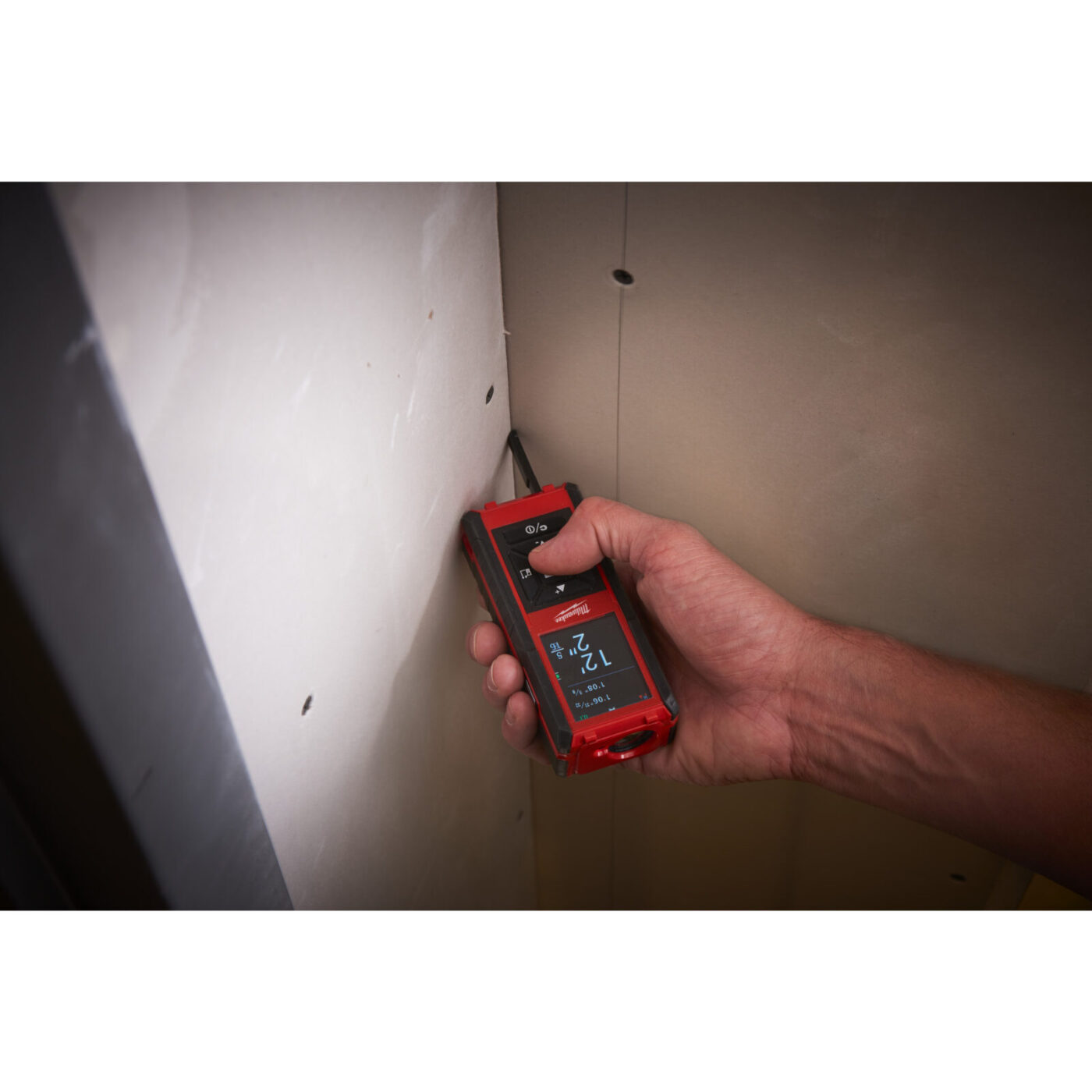 - Vestavěný sklopný kolík pro snadné měření rohů a okrajů a třípolohová automatická možnost měření