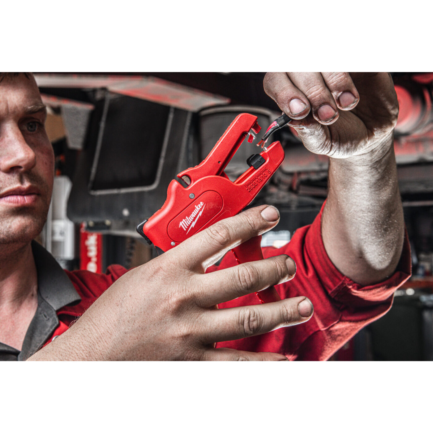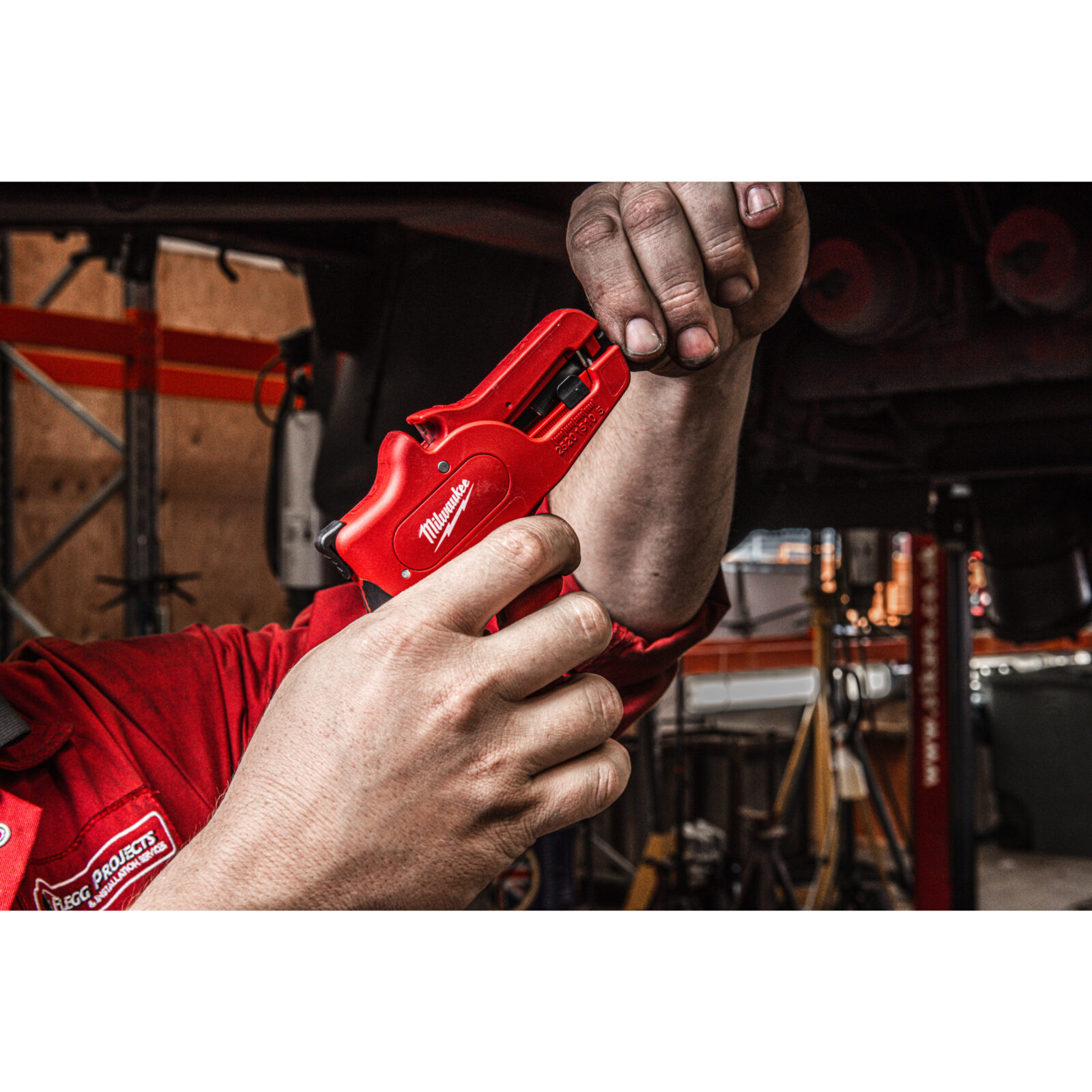 - Otvor na závěs nářadí pro snadné připevnění k bezpečnostnímu rámu Milwaukee, který umožňuje použití ve výškách.