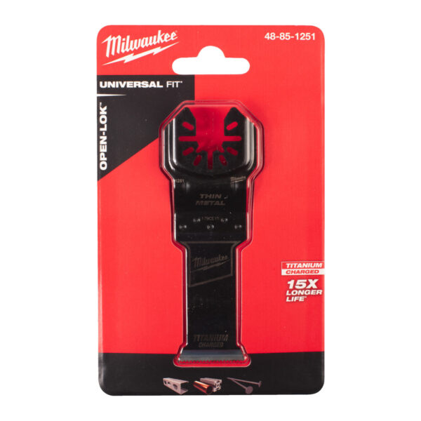 Bimetalové nože s titanovou povrchovou úpravou s užší šířkou řezu a delším tělem nože, určené k řezání měkkých kovů, šroubů, hřebíků, PVC a sádrokartonu. - Metal plunge blade Ti. BiM 28 mm - 1 pc