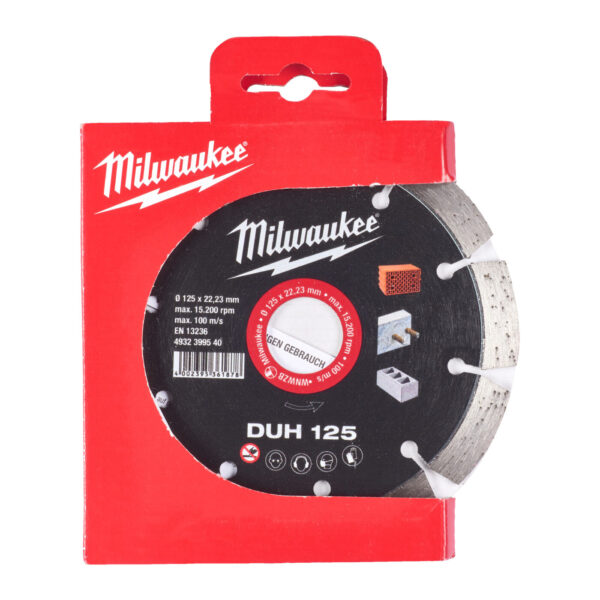 - Obsahuje – Kvalitní laserem svařovaný diamantový kotouč s výjimečným výkonem v tvrdých materiálech, jako je tvrdý beton, blokové dlažby a zdivo.