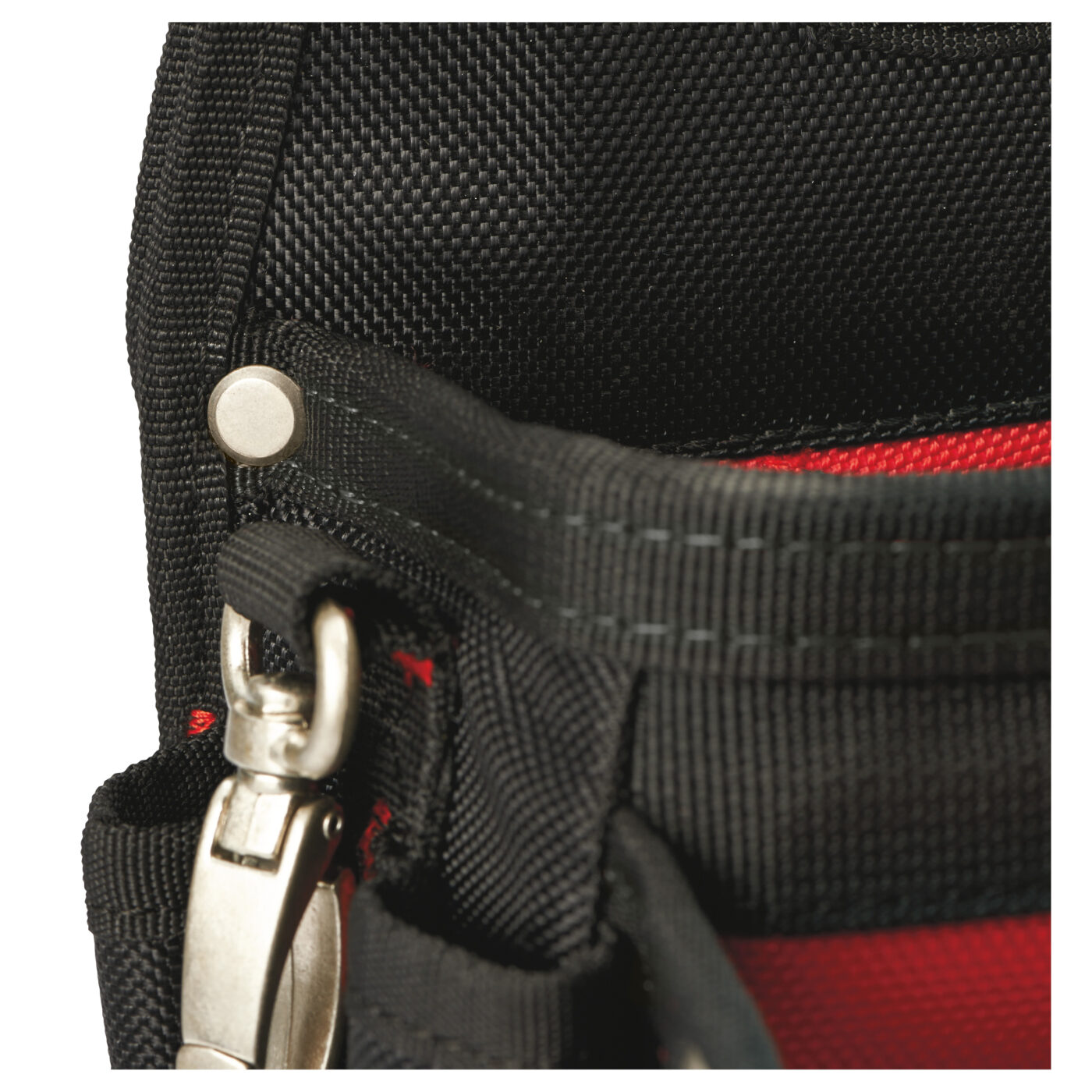 - Středově umístěná kovová poutka: umožňují brašnu rovnoměrně zavěsit na ramenní popruh.
