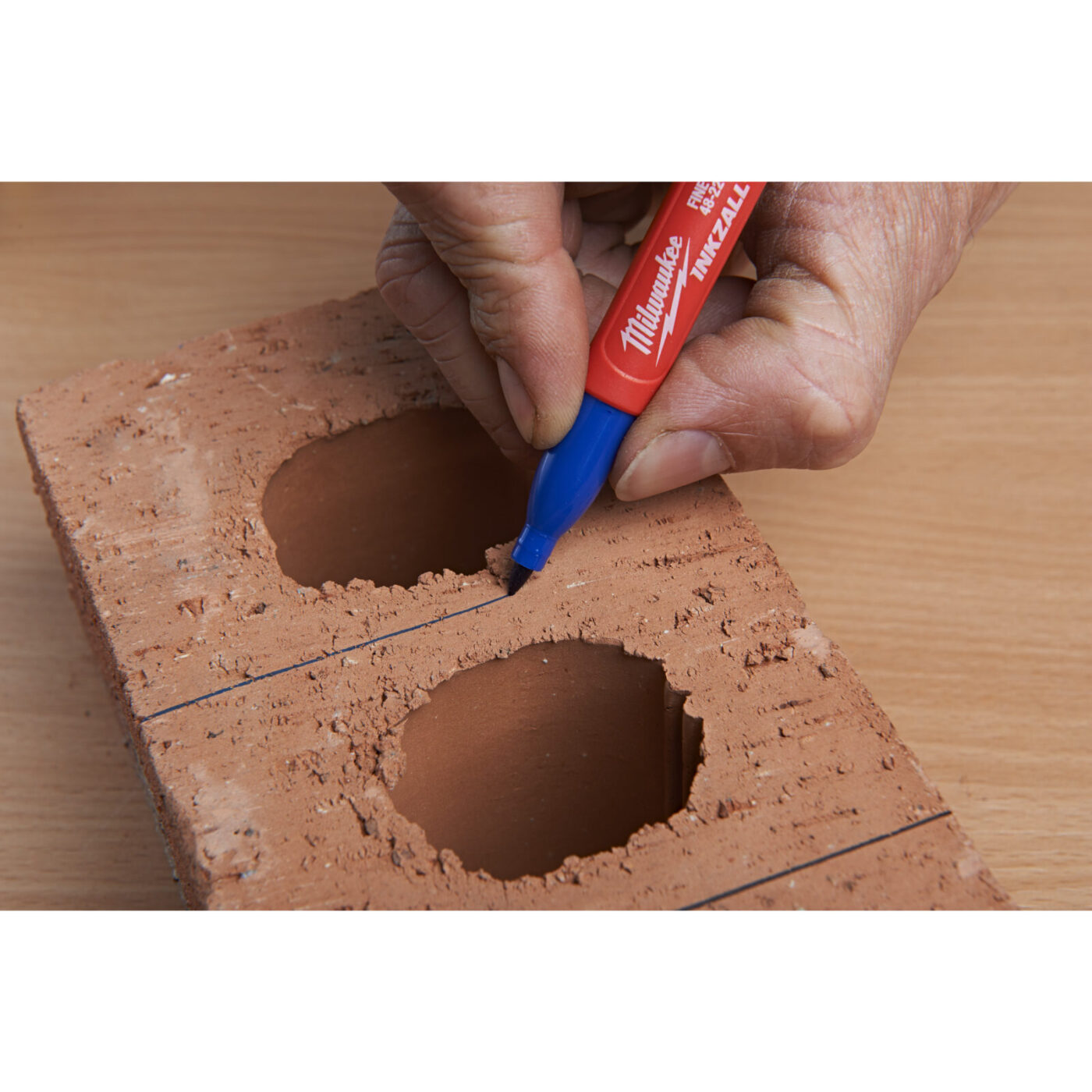 - Špička odolná proti opotřebení – akrylový hrot ideální pro drsné povrchy, například OSB a beton.