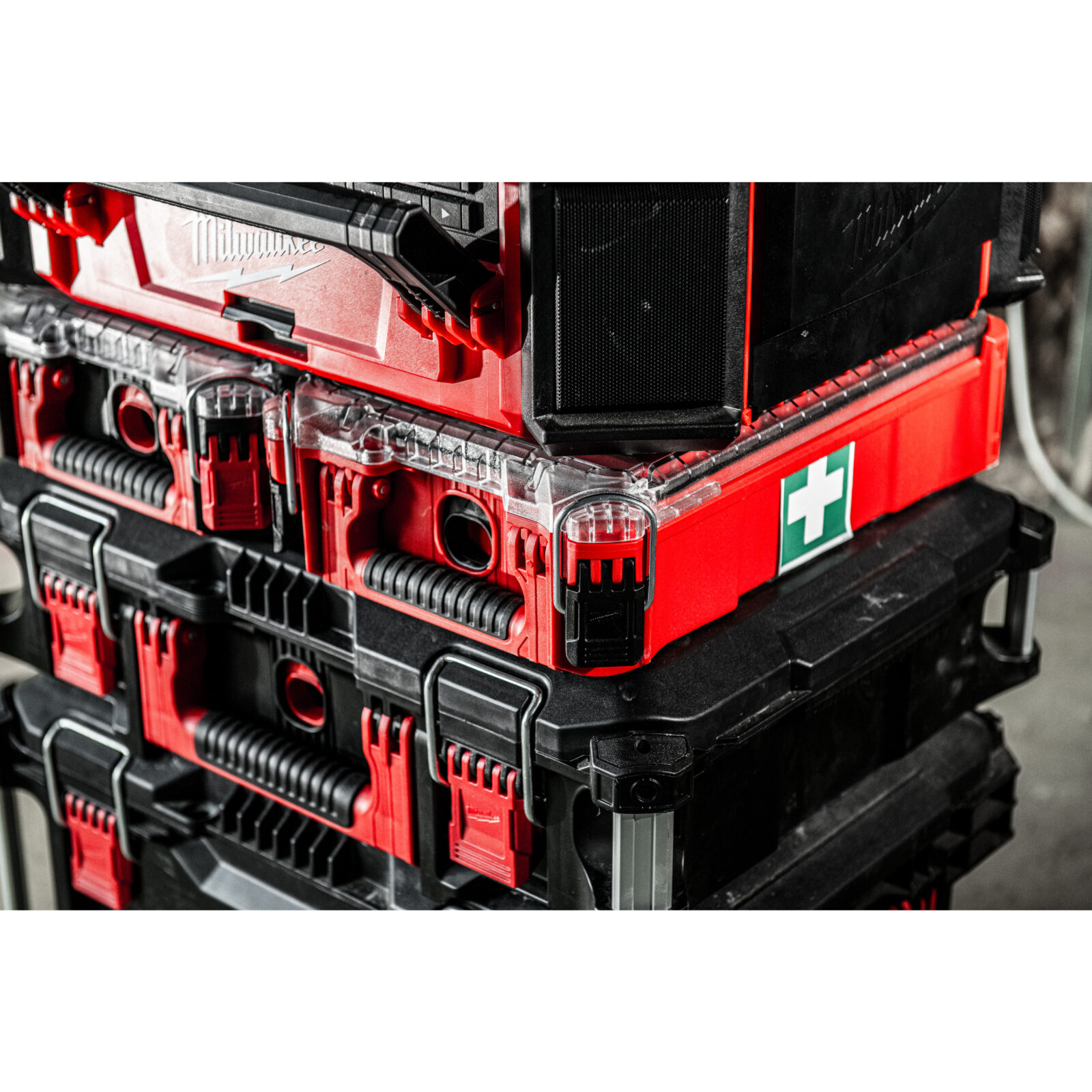 - Rychle identifikovatelný v okamžiku nouze díky červeně barvě kompaktního organizátoru PACKOUT™.