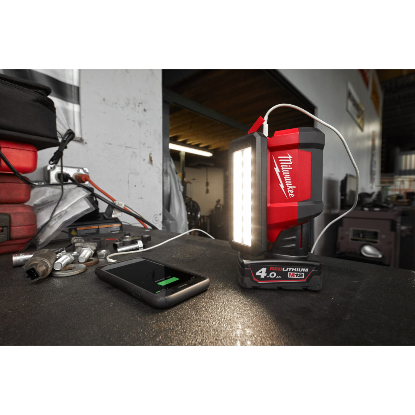 - Provozní doba až 24 hodin s akumulátorem M12™ s kapacitou 4,0 Ah