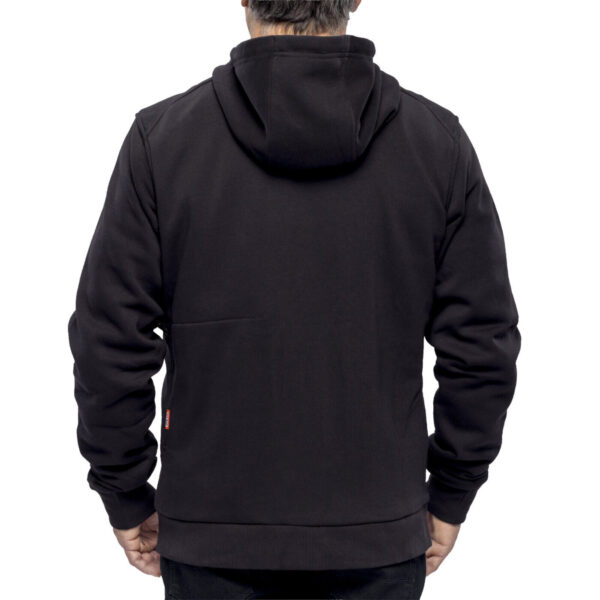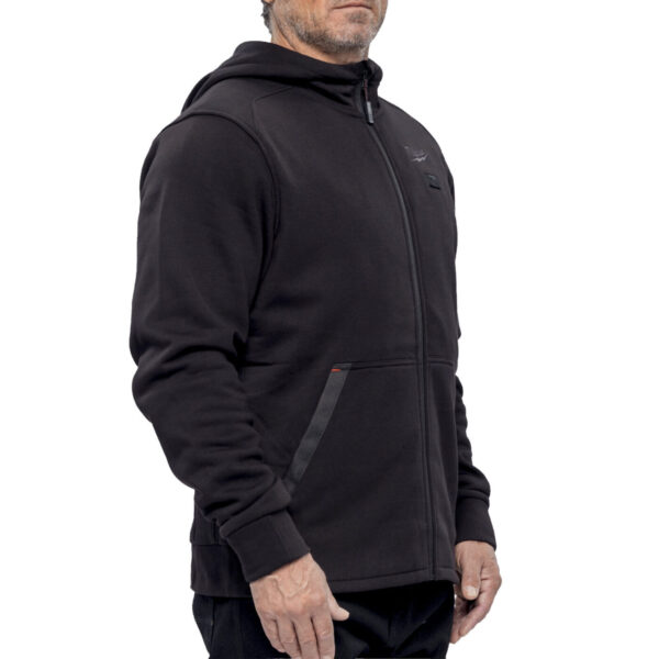 - Odolná vyhřívaná mikina s kapucí z pevné bavlny (56 %) s vyztuženými užitkovými kapsami a vnitřní hřejivou fleecovou podšívkou z polyesteru (44 %) – navržená tak, aby obstála i v náročných venkovních podmínkách