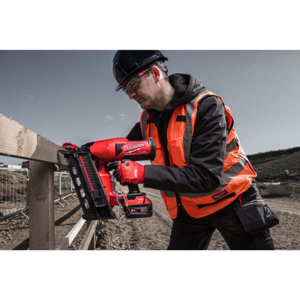 - Nastřeluje hřebíky s dvojitou hlavou MILWAUKEE® 21° o rozměrech 3,3 mm x 73 mm a 3,3 mm x 92 mm