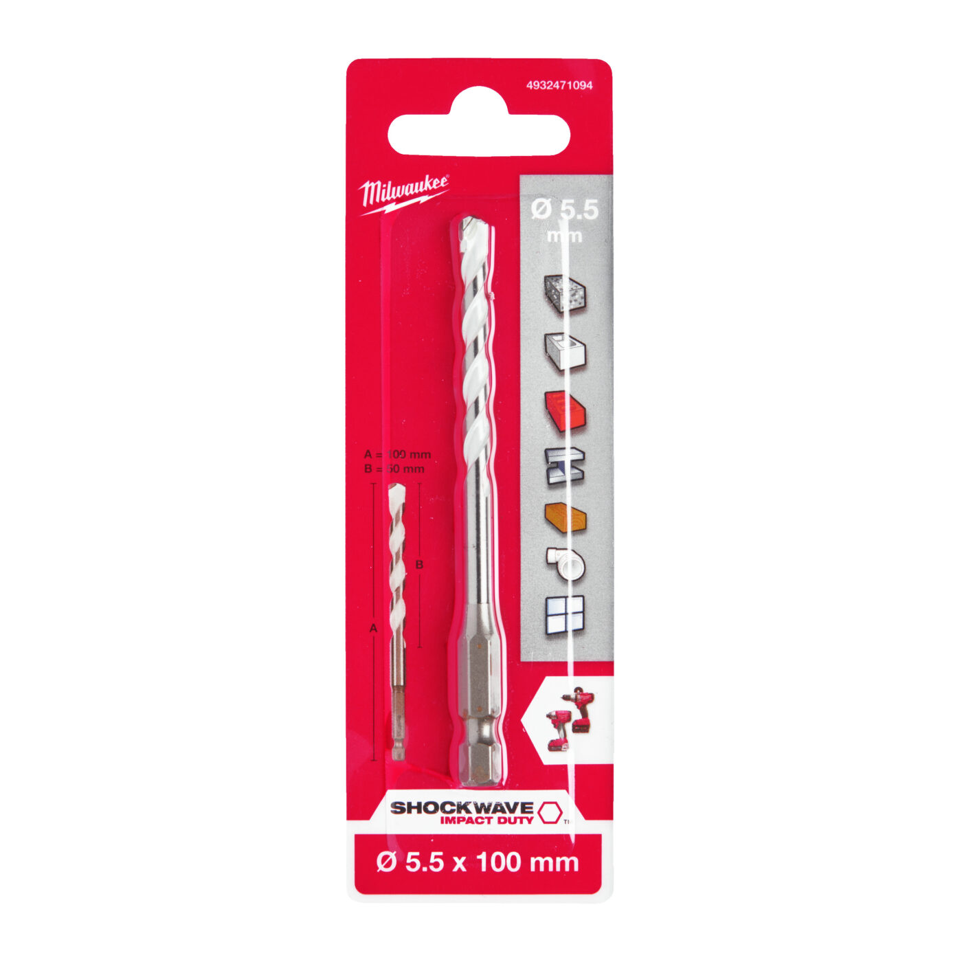- Vrtáky s tvrdokovovými hroty s agresivním úhlem výbrusu umožňují vrtání do betonu, cihel, střešních tašek, pórobetonových bloků, plechů, hliníku, měkkých a středně tvrdých keramických obkladů, všech typů dřeva a PVC