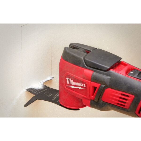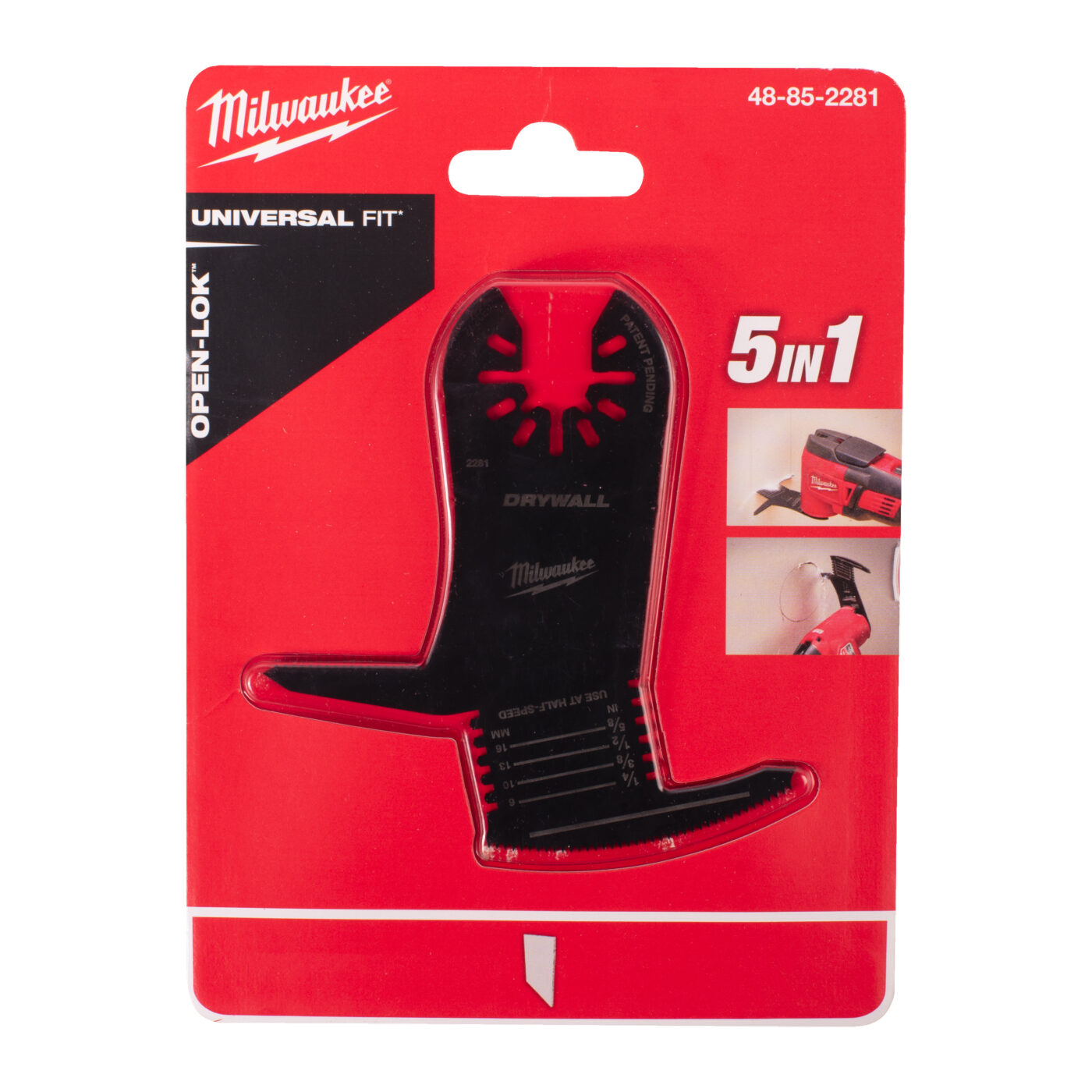 Nůž 5 v 1 na sádrokarton / sádrovláknité desky. Funkce: Přední hrana je zakřivená pro hladké řezy. 2. Na bocích čepele jsou propichovací hroty pro snadné zapíchnutí do sádrokartonu pro čistý začátek. 3. Boční čepel směřující dozadu nabízí možnost provádět mimořádně přesné a detailní řezy, například kruhy nebo křivky. 4. Zářezy na boční straně čepele pro seříznutí přebytečné sádrokartonové desky. 5. Laserované značení hloubky řezu. - Plasterboard plunge blade - 1 pc