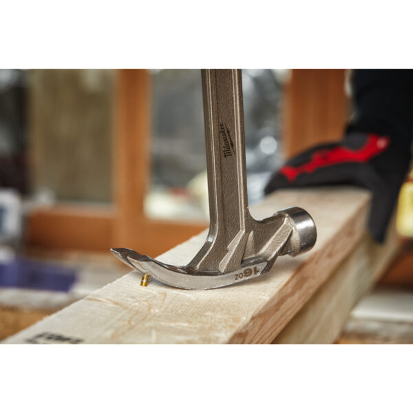 - Zakřivení kladiva snižuje poškození materiálu při tahání hřebíků.