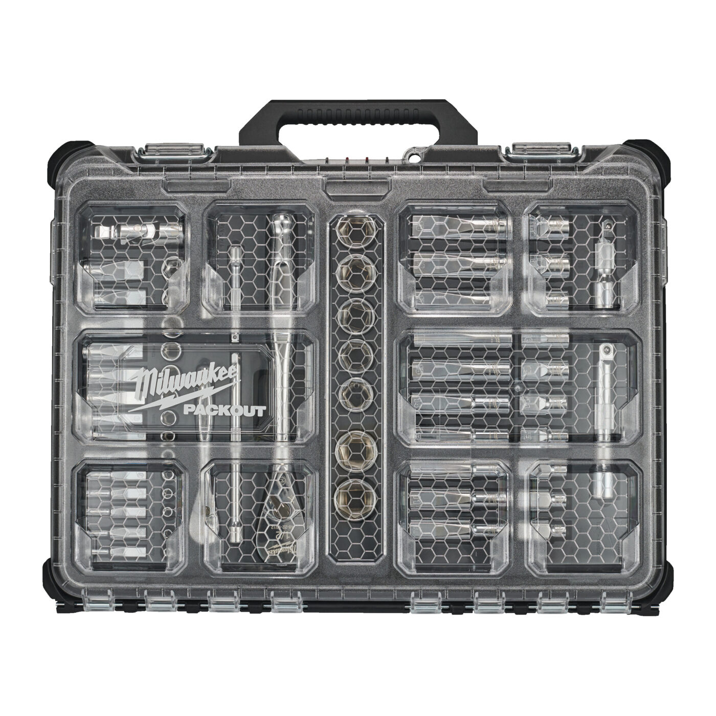 - Obsahuje – PACKOUT štihlý organizér, 1/2″ Drive Standardní nástrčné hlavice: 10 mm, 11 mm, 12 mm, 13 mm, 14 mm, 15 mm, 16 mm, 17 mm, 18 mm, 19 mm, 20 mm, 21 mm, 22 mm, 23 mm, 24 mm, 25 mm, 26 mm / Hluboké nástrčné hlavice: 10 mm, 11 mm, 12 mm, 13 mm, 14 mm, 15 mm, 16 mm, 17 mm, 18 mm, 19 mm / 1/2″ Drive 76 mm prodloužení, 127 mm prodloužení, 1/2 Drive univerzální kloub; 1/4″ Drive Standardní nástrčné hlavice: 4 mm, 4. 5 mm, 5 mm, 5,5 mm, 6 mm, 7 mm, 8 mm, 9 mm, 10 mm, 11 mm, 12 mm, 13 mm, 14 mm, 15 mm / Hluboké nástrčné hlavice: 4 mm, 4,5 mm, 5 mm, 5,5 mm, 6 mm, 7 mm, 8 mm, 9 mm, 10 mm, 11 mm, 12 mm, 13 mm, 14 mm, 15 mm / 1/4″ Drive 76 mm prodloužení, 152 mm prodloužení, 1/4″ Drive univerzální kloub.