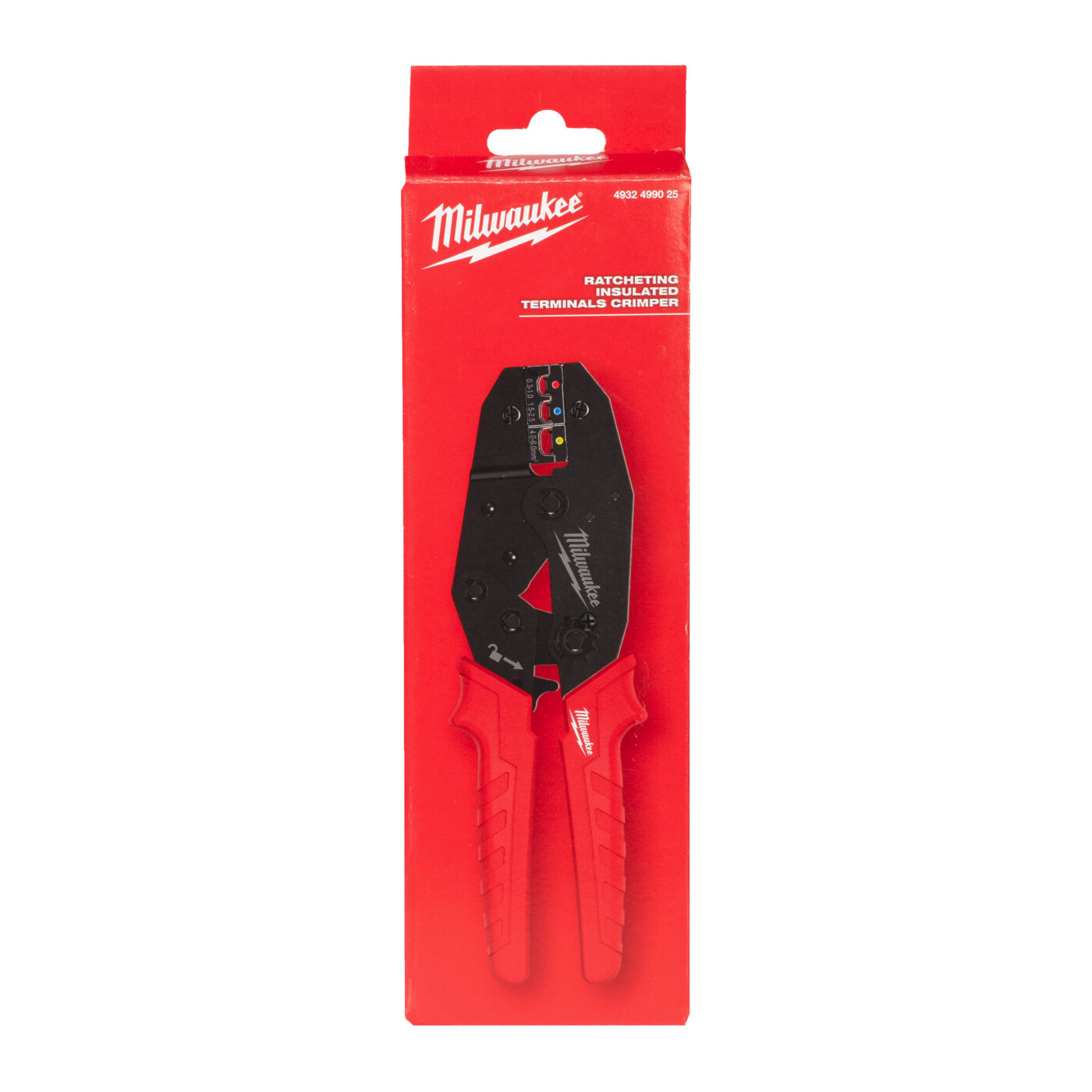 - 3 krimpovací dutiny pro krimpování více velikostí konektorů jedním nástrojem. Červená (0,3 – 1,0 mm² ), modrá (1,5 – 2,5 mm²) a žlutá (4,0 – 6,0 mm²).
