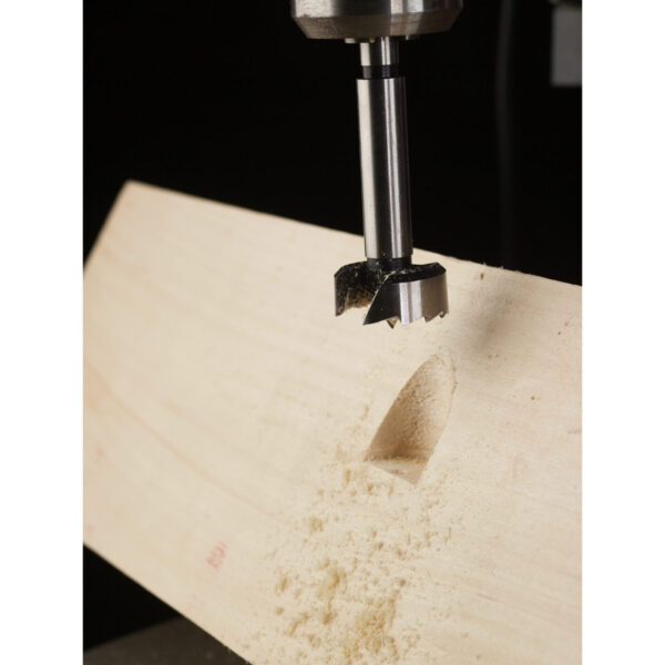 - Středicí hrot pro přesné polohování vrtáku, obvodové břity zajišťují frézování bez otřepů. Hodí se pro vrtání do všech druhů přírodního měkkého i tvrdého dřeva.