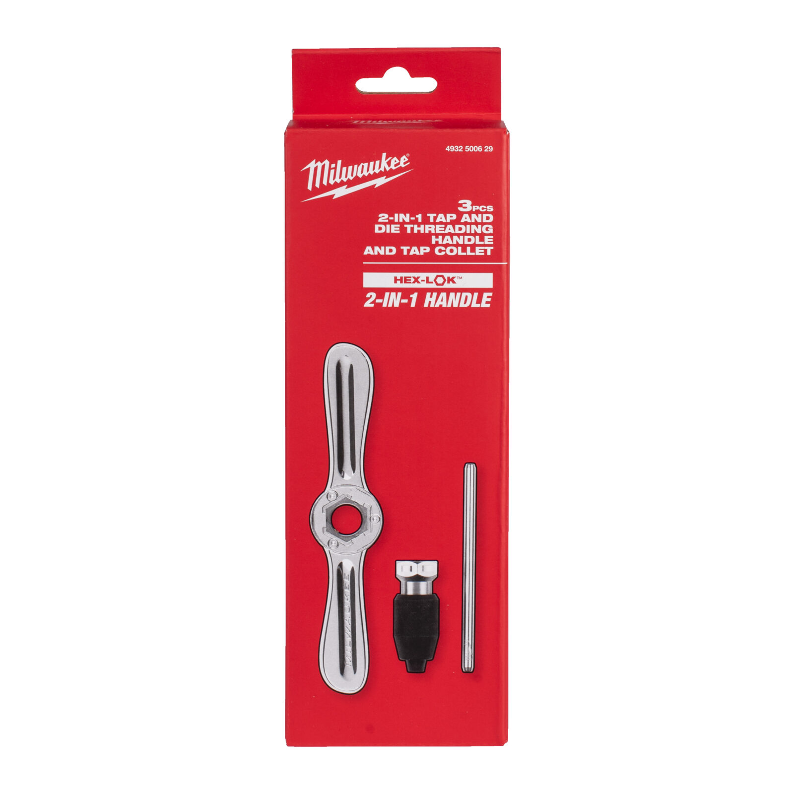 - Rukojeť Hex-LOK™ 2 v 1 je kompatibilní se závitovými oky 1” Hex a držákem závitníků MILWAUKEE®