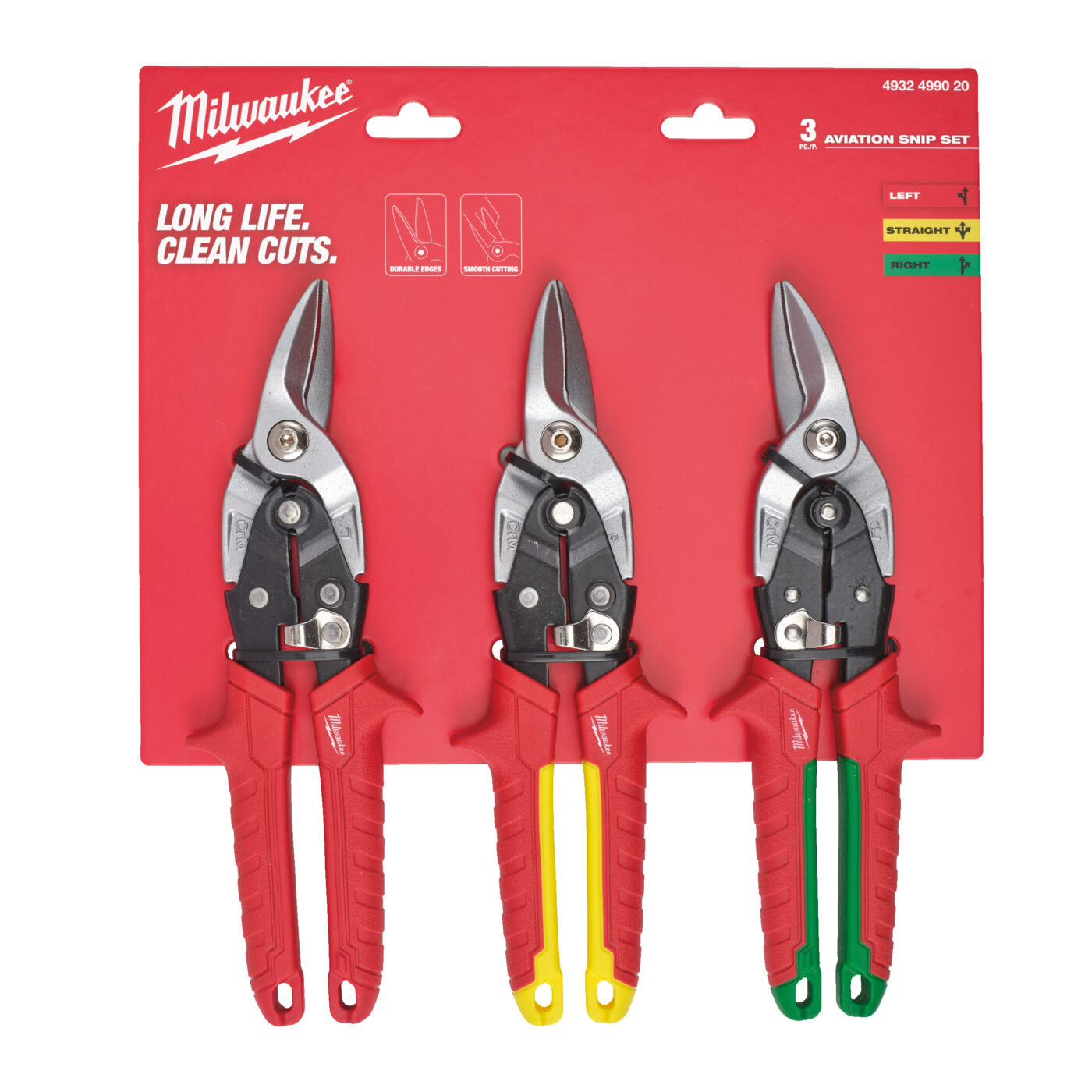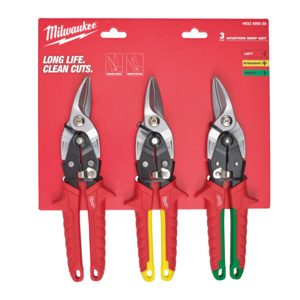 - Sada obsahuje 1 x levé nůžky na plech (4932499011), 1 x pravé nůžky na plech (4932499014) a 1 x rovné nůžky na plech (4932499018).