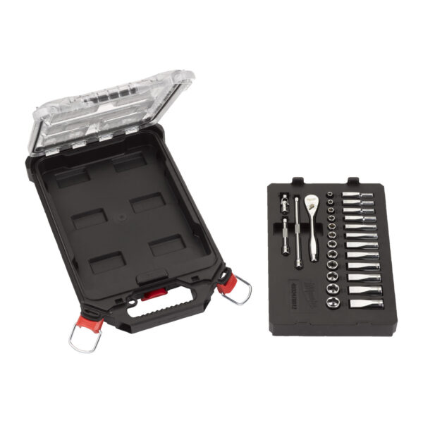 Sada ráčny ¼″ a metrických nástrčných klíčů (28 ks) ve štíhlém organizéru PACKOUT™ - 1/4" Metric 28 pc Ratchet & Socket PACKOUT Set