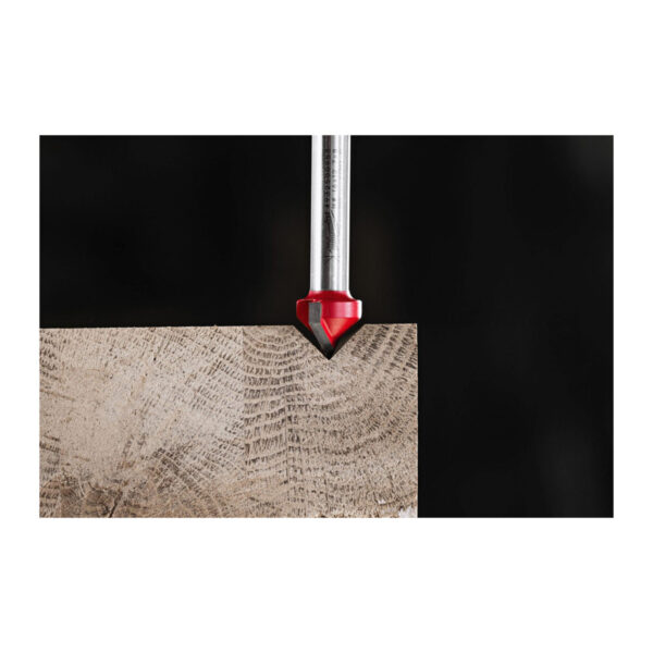 - Dvoubřitá tvrdokovová fréza pro univerzální použití — pro dekorativní V-drážky, srážení hran i gravírování či tvorbu nápisů