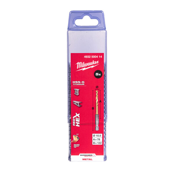 Vrtáky Shockwave HSS Tin Red Hex 10,5 mm (5ks) - Shockwave HSS-G TiN Red Hex 10.5 mm - 5 pcs