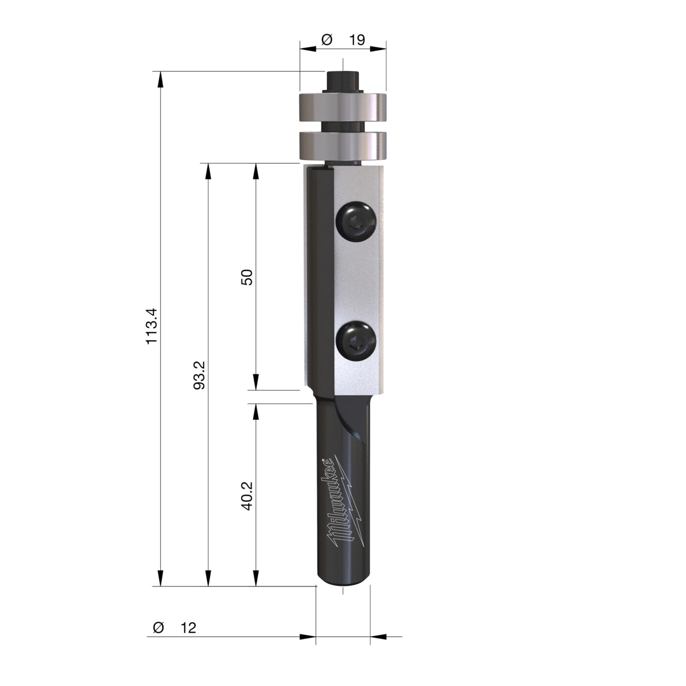- Varianta se stopkou ⌀ 8 mm má jedno spodní ložisko, větší stopky ⌀ 12 mm / 1/2˝ jsou osazené dvojitým spodním ložiskem